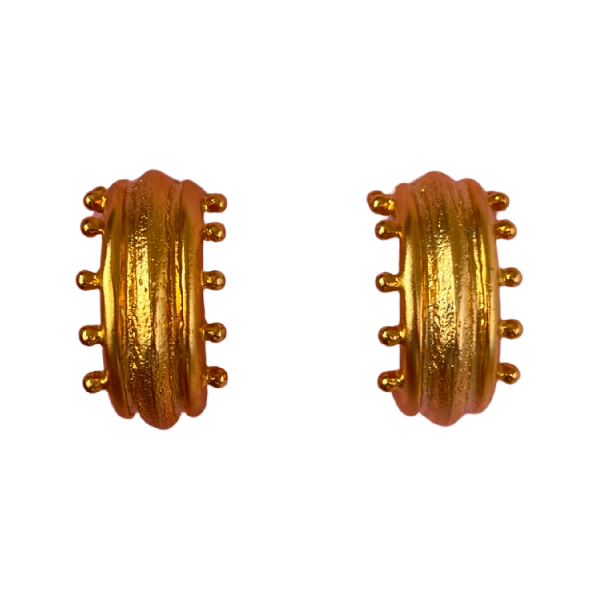 1990s Large Brushed Gold Plated Hoop Earrings - Post